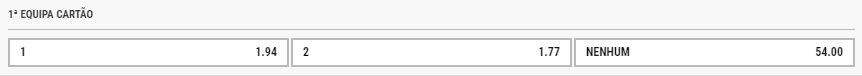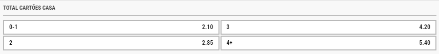 - Cartões por Tempo: Aposte no número de cartões que serão mostrados em cada tempo da partida.